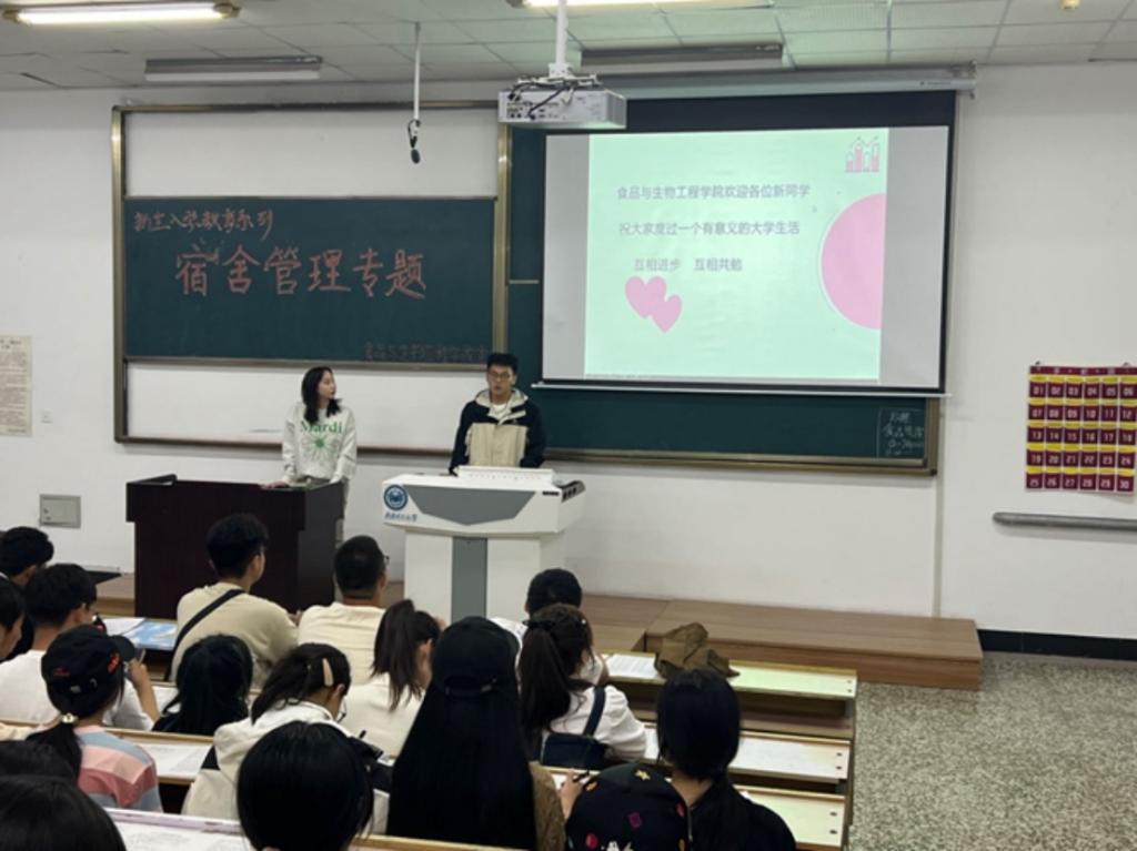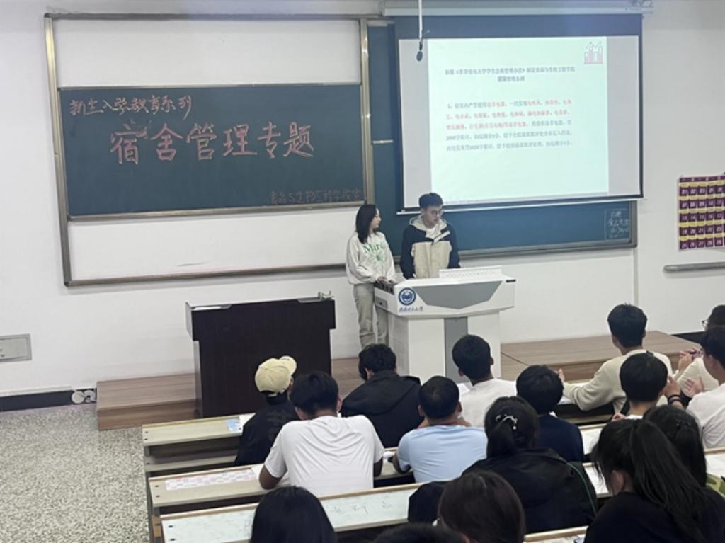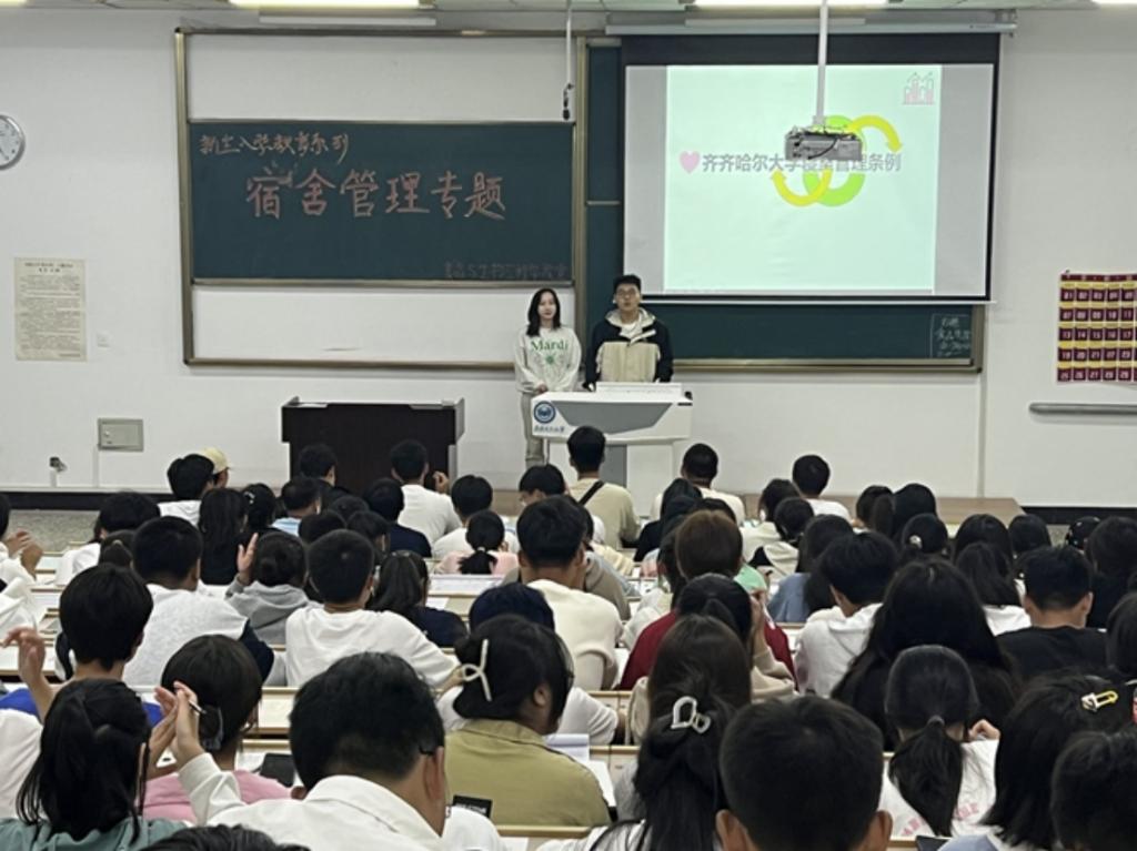 為進一步加強我院新生宿舍安全管理,增強學生安全意識,排除安全隱患,切實維護良好的校園秩序,給我院新生營造一個良好、安全的學習和生活環(huán)境。我院于2023年9月6日在守正樓103階梯教室組織舉辦新生入學教育系列之“宿舍安全管理”專題講座。主講人為我院學生會紀檢部部長隋赫以及權益部部長王婧函,我院全體23級新生參加。