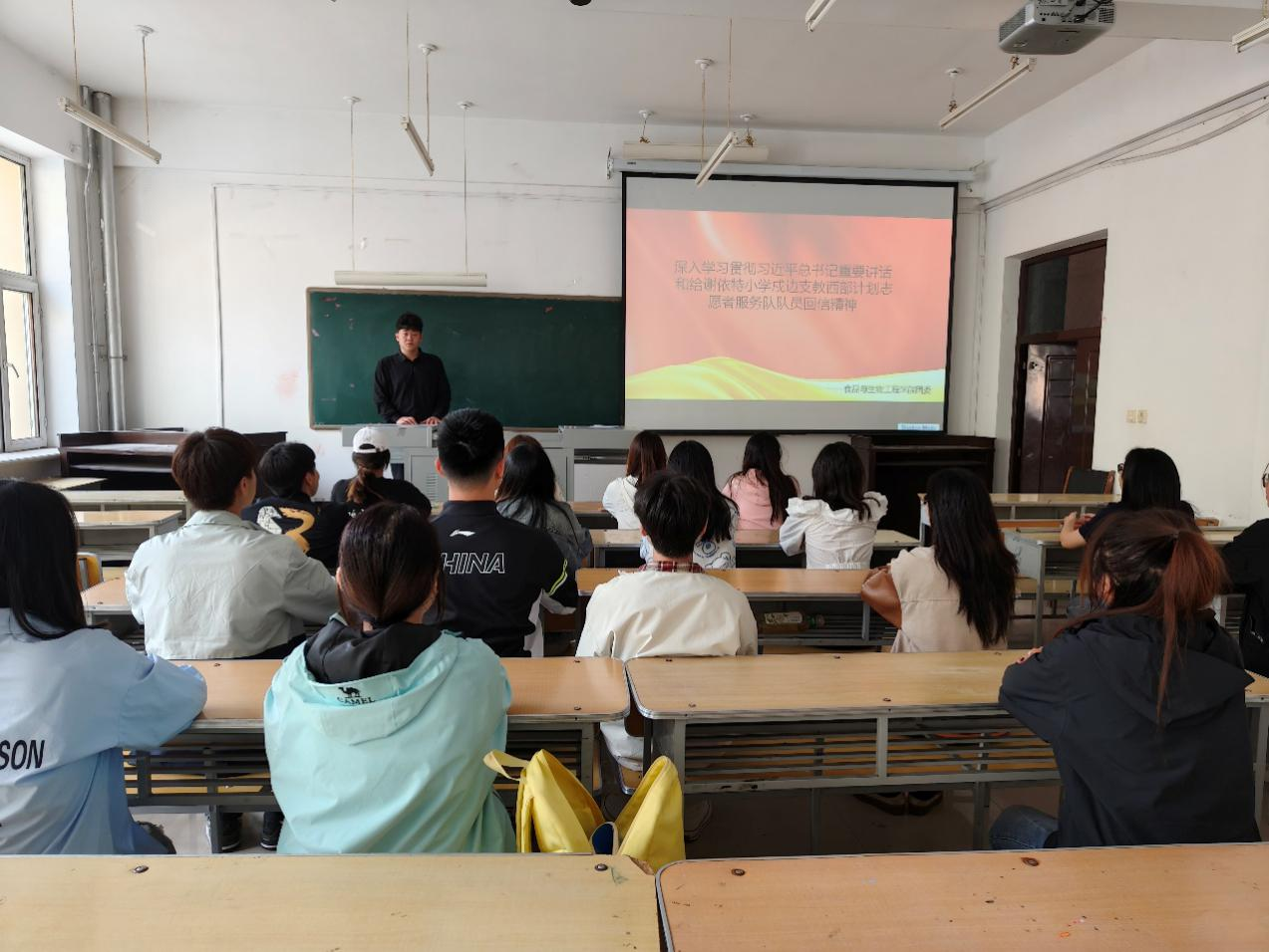 活動中,楊藝林分享了謝依特小學戍邊支教西部計劃志愿者服務隊的先進事跡,圍繞習近平總書記重要講話和回信內(nèi)容,結(jié)合自身學習和生活實際,分享了感悟與體會。他指出:習近平總書記的回信不僅是對謝依特小學支教志愿者的高度肯定,更是對全體青年學生的殷切期望。作為新時代的青年,我們應當以支教志愿者為榜樣,將個人理想融入國家發(fā)展大局,用實際行動踐行青春使命。參加活動的同學紛紛表示,作為新時代青年,我們不僅要努力學習專業(yè)知識,更要積極投身社會實踐,用實際行動為社會貢獻一份力量,希望能像支教志愿者一樣,用知識和愛心去幫助更多的人,傳遞正能量。